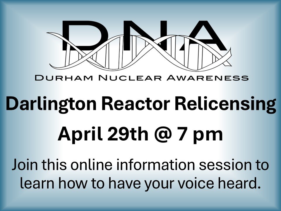 Durham Nuclear Awareness is inviting you to join an online preparatory session to support public participation in the upcoming review by the Canadian Nuclear Safety Commission of an application by Ontario Power Generation for the operation of the four CANDU reactors at the Darlington Nuclear Generating Station on the shore of Lake Ontario in the Municipality of Clarington.