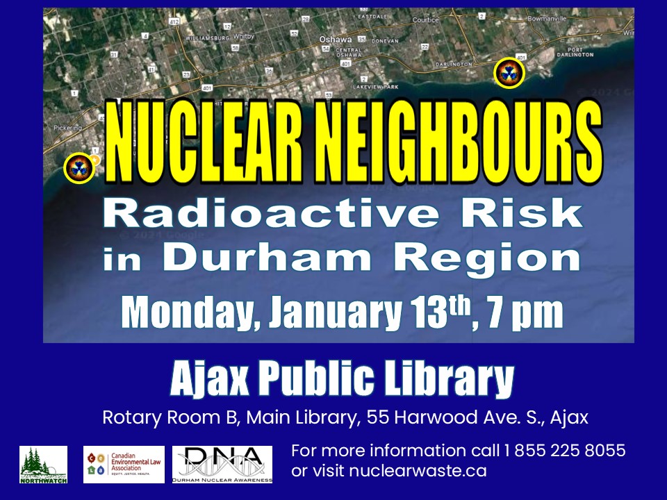 The January 13th event described above is being co-hosted by Northwatch, Canadian Environmental Law Association (CELA) and Durham Nuclear Awareness.